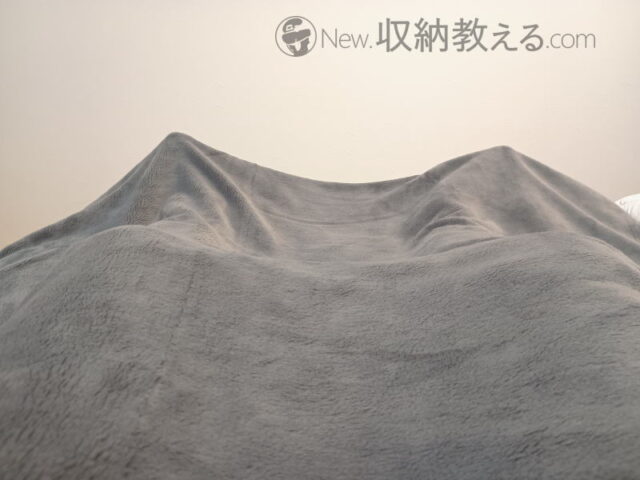コットン生地の収納袋も付いています。円筒形なので棚などへの収まりは悪いですが、毛布を巻いて収納するには便利でしょう。