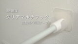 突っ張り棒の上に乗せて使う棚板というシンプルなものですけど、突っ張り棒のうち1本は上写真のようにシッカリと固定される構造になっています。これによって棚板がズレにくくなります。