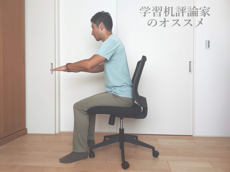 肘掛けの表面は木綿のような手触りで悪くありません。というかむしろ触り心地が良いです。座面は厚手のポリエステルのメッシュ生地。ウレタンも厚めで、座り心地は悪くないです。へたりが心配ですが、1~2年くらいは十分持ちそうです。